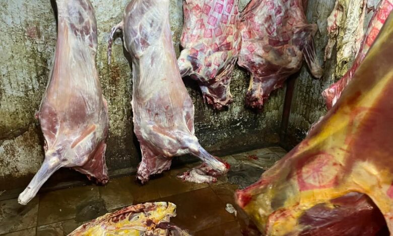 بالتنسيق التام مع مديرية الطب البيطري من ضبط 5 طن لحوم لحيوانات مريضة مذبوحة خارج المجازر غير صالحة للاستهلاك الأدمي ،