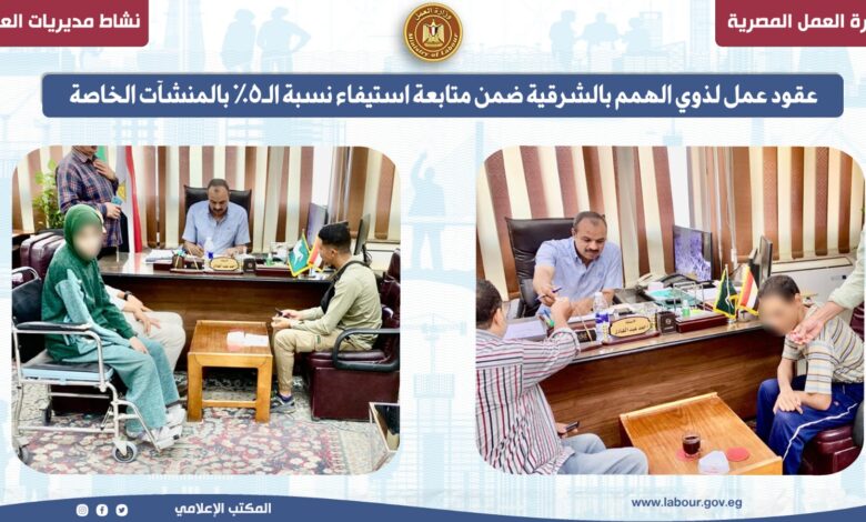 وقال محمد كمال مدير المديرية إن هذه الجهود تأتي تنفيذًا لتوجيهات محمد جبران وزير العمل بضرورة توفير فرص عمل مناسبة لذوي الهمم،