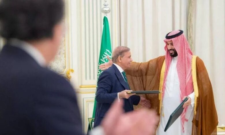 وذكرت وكالة الانباء السعودية أن ولي العهد الأمير محمد بن سلمان ورئيس الوزراء الباكستاني محمد شهباز شريف قاما بالتوقيع على «اتفاقية الدفاع الاستراتيجي المشترك».