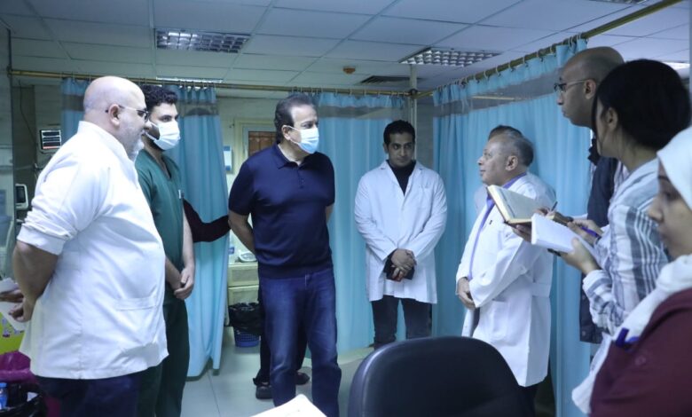 وقال الدكتور حسام عبدالغفار المتحدث الرسمي لوزارة الصحة والسكان، إن الوزير، اطلع على كشوفات سجل استقبال الطواريء عن اليوم،