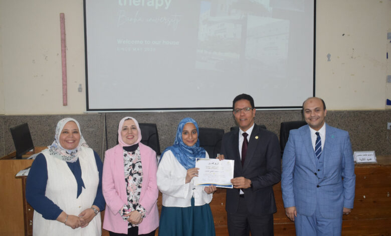 بحضور الدكتور جيهان عبد الهادى نائب رئيس الجامعة لشئون الدراسات العليا والبحوث ،والدكتور وليد طلعت القائم بعمل عميد كلية العلاج الطبيعى ،ووكلاء الكلية ،وأعضاء هيئة التدريس ،والطلاب.