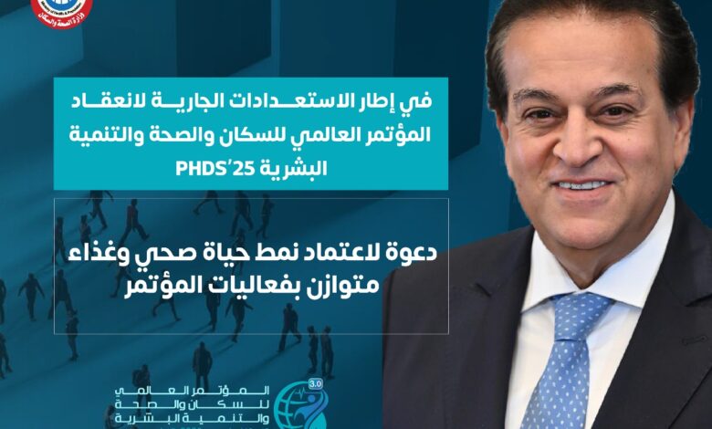 يناقش المؤتمر العالمي للسكان والصحة والتنمية البشرية ضمن أجندة فعالياته “النظام الغذائي ونمط الحياة الصحي..