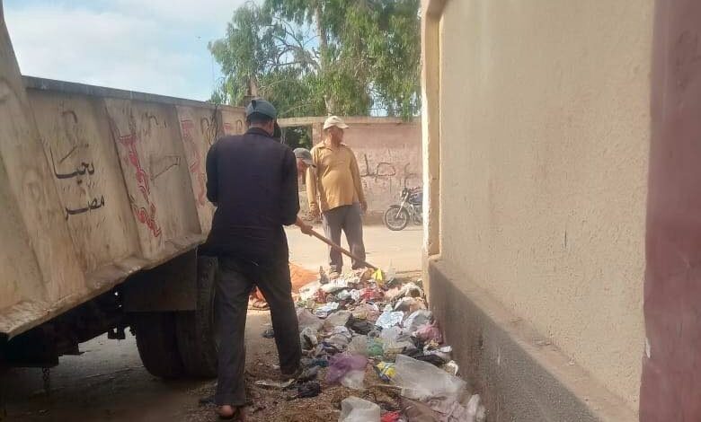 حيث تم رفع تراكمات القمامة من الشوارع الرئيسية والفرعية وتم رفع السفوحة من على جانبي الطريق بمدخل المدينة ، وذلك لإظهار جمال المدينة.