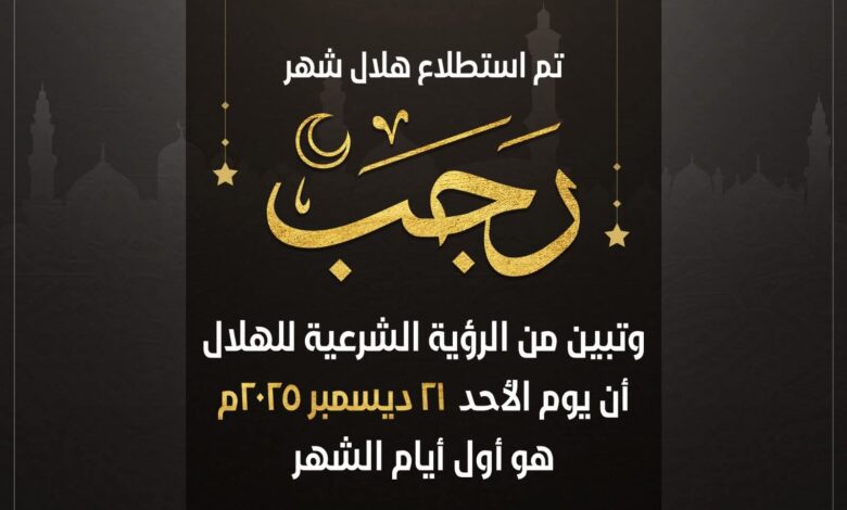 وعلى ذلك تُعلن دارُ الإفتاءِ المصريةُ أن يومَ الأحد الموافق الواحد والعشرين من شهر ديسمبر لعام ألفين وخمسة وعشرين ميلاديًّا هو أول أيام شهر رجب لعام ألفٍ وأربعمائةٍ وسبعة وأربعين هجريًّا.