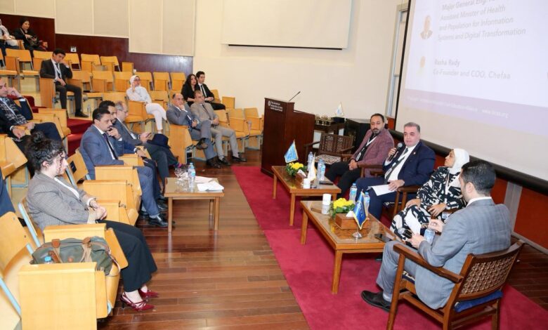 وفي كلمته، استعرض اللواء عمرو عايد، مساعد الوزير لنظم المعلومات والتحول الرقمي، التطورات في ميكنة المستشفيات وربطها الكترونياً،