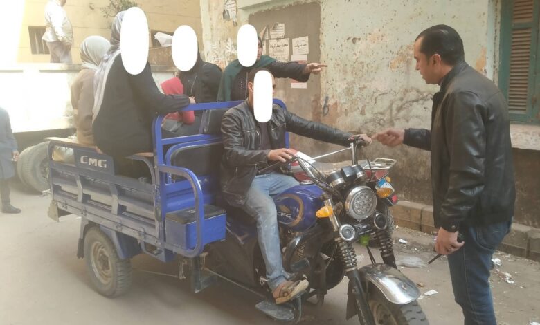 ضبط والتحفظ على تروسيكل بشارع الانجبي لقيام سائقه بتحميل ركاب وتعريض حياتهم للخطر