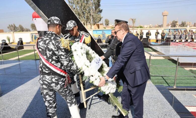 بوضع إكليل من الزهور على النصب التذكاري لشهداء الشرطة بإدارة قوات الأمن بمدينة قويسنا.