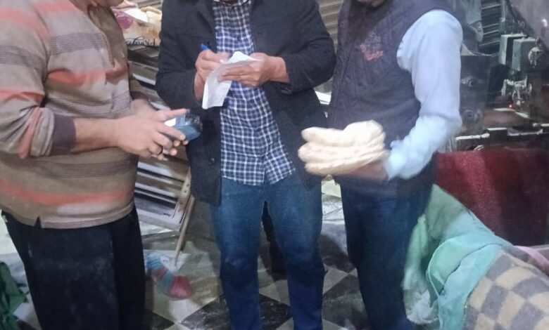 متابعة اعمال الحملات التموينية على المحال التجارية والمنشآت والمخابز بمدينة قلين والقرى