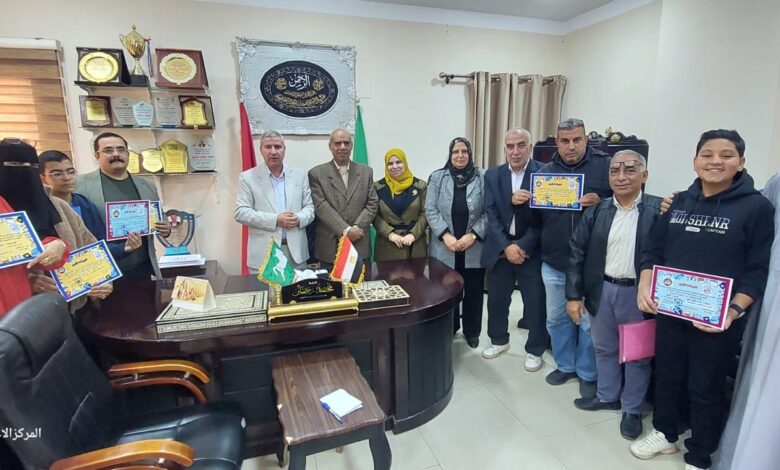 كرم محمد رمضان وكيل اول وزارة التربية والتعليم بمحافظة الشرقية الطلاب الفائزين علي المركز الاول و الثالث والرابع علي مستوي الجمهورية،