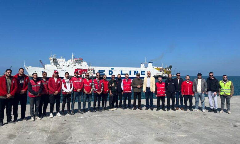 ومنسق الهلال الأحمر التركي في مصر، أمين بويز، بالإضافة إلى موظفي الهلال الأحمر التركي والمصري، ومسؤولي الميناء والجمارك.