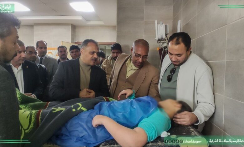 محافظ الشرقية يزور مصابي حادث تصادم ميني باص مع سيارة نقل بطريق العاشر