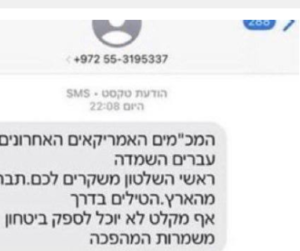 نشرت وسائل إعلام عبرية مساء الثلاثاء مضمون رسالة نصية وصلت هواتف آلاف الإسرائيليين تدعوها لمغادرة البلاد فورا.