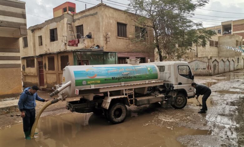 من خلال رفع تراكمات مياه الأمطار بمختلف أنحاء المدينة والقرى، في تحرك سريع يستهدف الحد من آثار الأمطار وتيسير حركة المواطنين بالشوارع الرئيسية والفرعية.