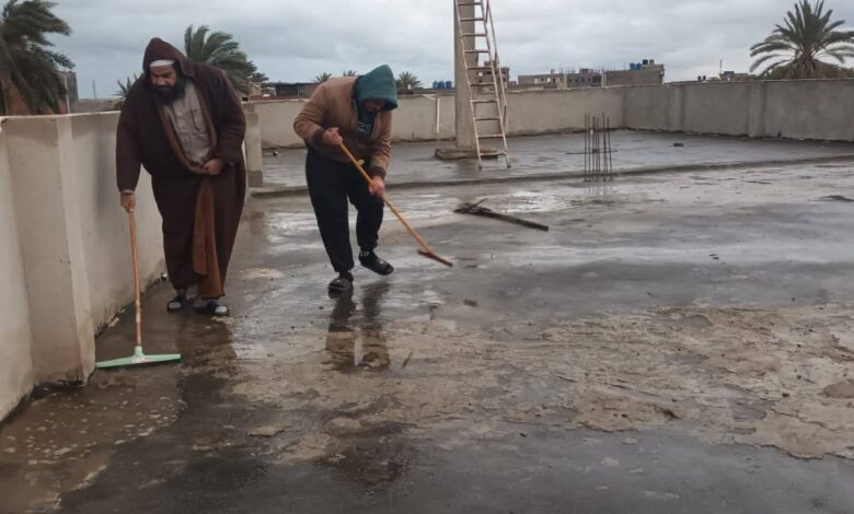 حملاتها المكثفة لتطهير أسطح المساجد ونزح مياه الأمطار، بهدف الحفاظ على سلامة بيوت الله عز وجل وتهيئتها لاستقبال المصلين في ظل التقلبات الجوية.