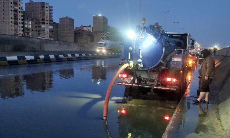 استمرار جهود شركة مياه القليوبية: لرفع تجمعات مياه الأمطار على مدار الليل والصباح
