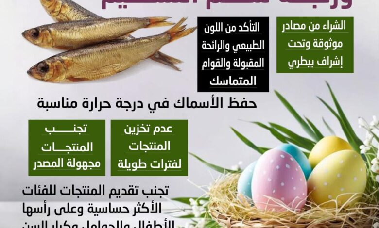 ونشرت وزارة الزراعة، حزمة الإرشادات الوقائية، للمواطنين، في مقدمتها شراء الأسماك المملحة من مصادر موثوقة وتحت إشراف بيطري، والتأكد من سلامة المنتج من حيث اللون والرائحة والقوام، مع تجنب المنتجات مجهولة المصدر أو المعروضة بأسعار غير منطقية.