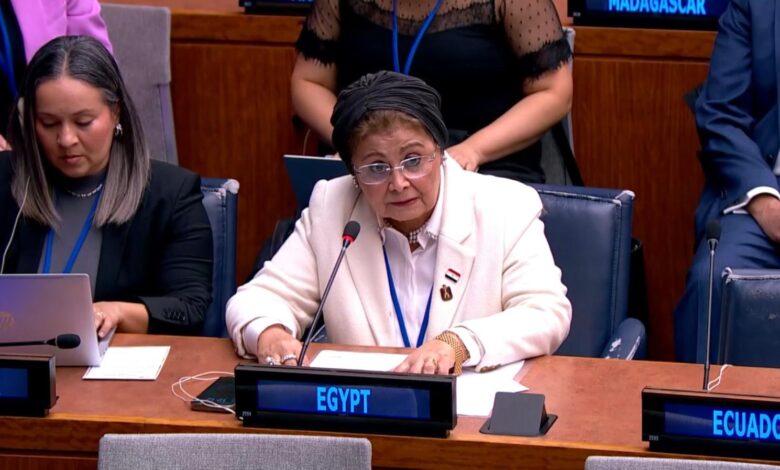 وأكدت نائب الوزير في مستهل كلمتها انضمام مصر إلى البيانين المقدمين باسم مجموعة الـ77 والصين، وباسم المجموعة العربية.