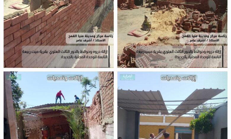 وقام المحاسب اشرف عامر رئيس مركز ومدينة منيا القمح بإزالة ٣ حالات بناء مخالف بمساحة إجمالية ٢٤٠ متراً،