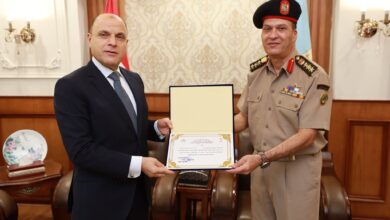محافظ كفرالشيخ يكرم المستشار العسكري وفريقه تقديرًا لجهودهم في إنجاح التدريب العملي المشترك «صقر 150