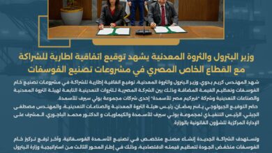 كتب اسامه العريس شهد المهندس كريم بدوي، وزير البترول والثروة المعدنية، توقيع اتفاقية إطارية للشراكة في مشروعات تصنيع خام الفوسفات…