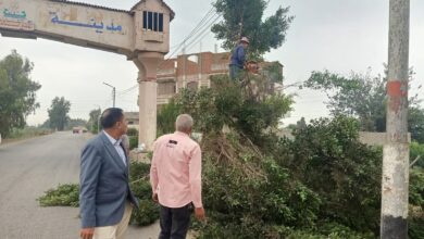 رفع كفاءة طريق قلين الشين وتهذيب الأشجار المتداخلة بخطوط الانارة